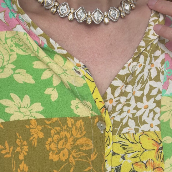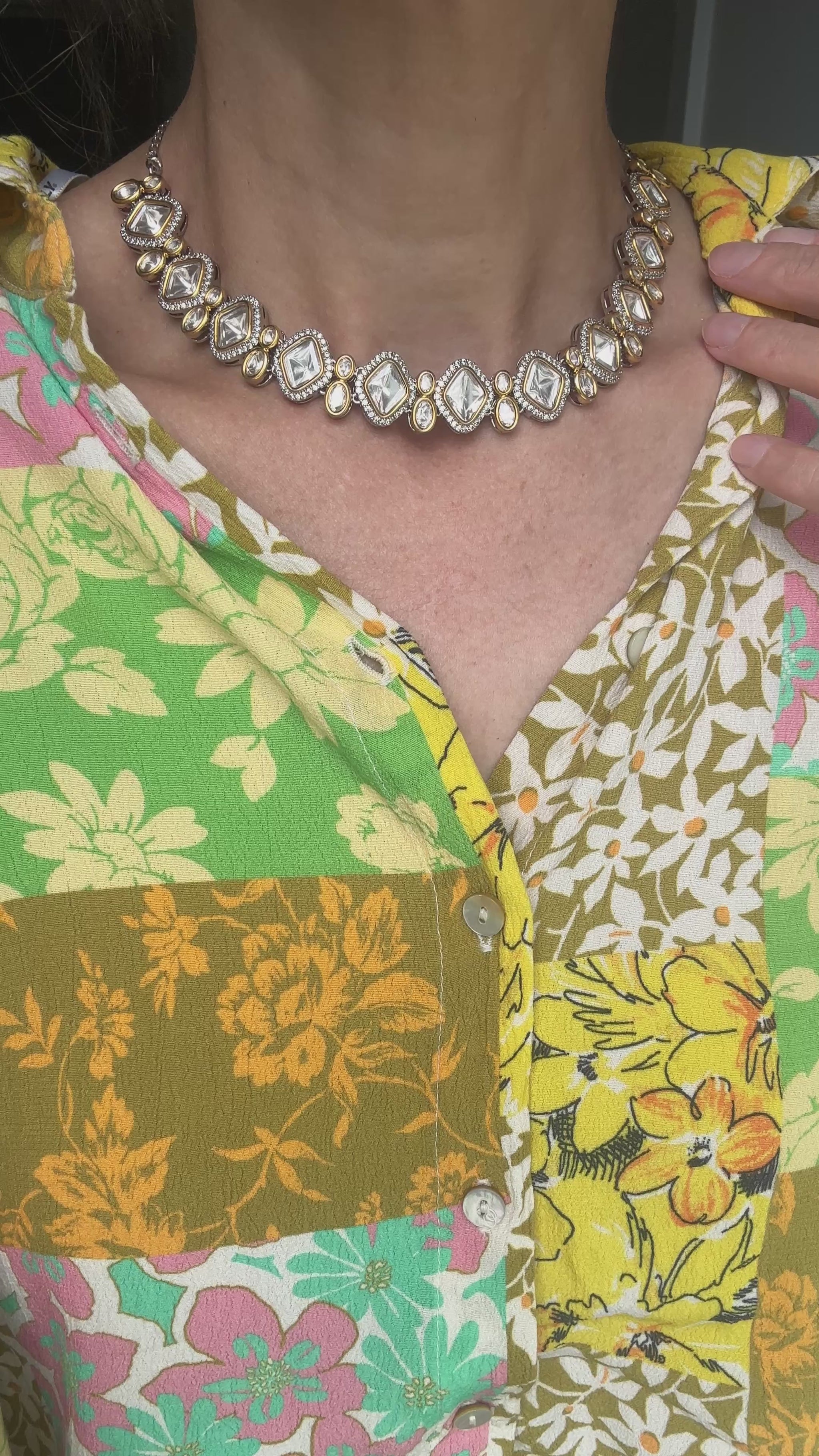 Moissanite Polki & AD stones set in a beautiful two tone necklace.