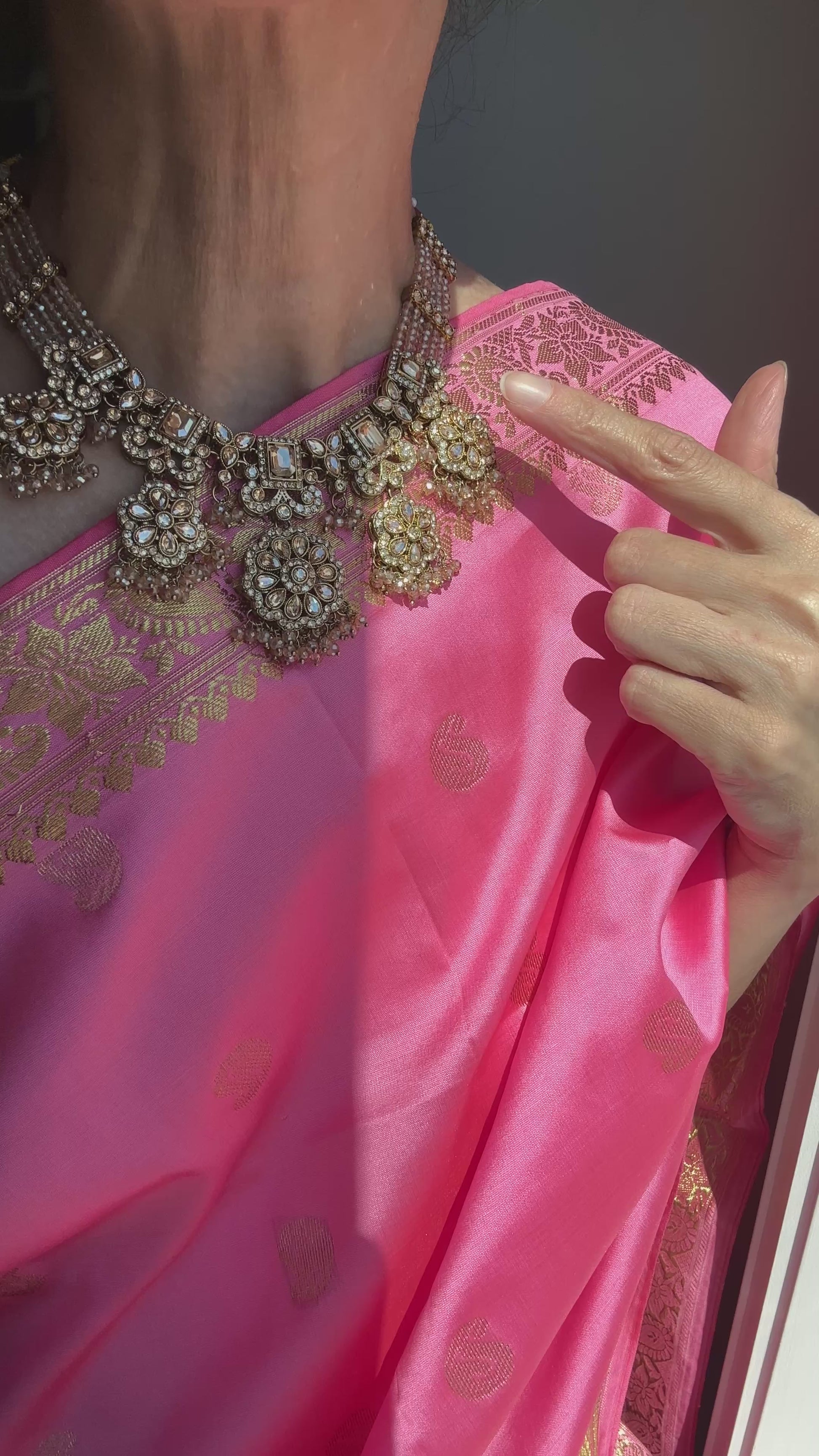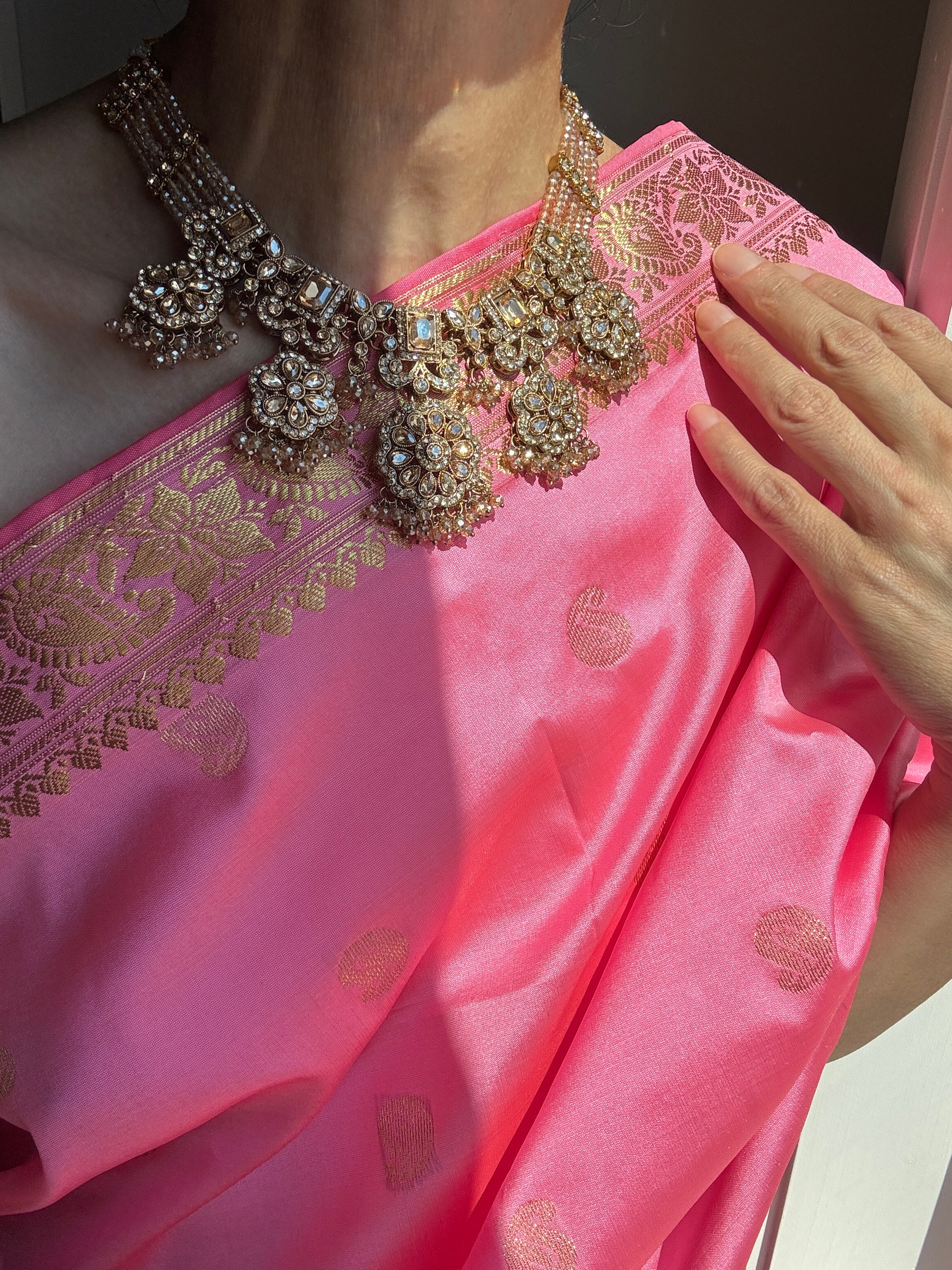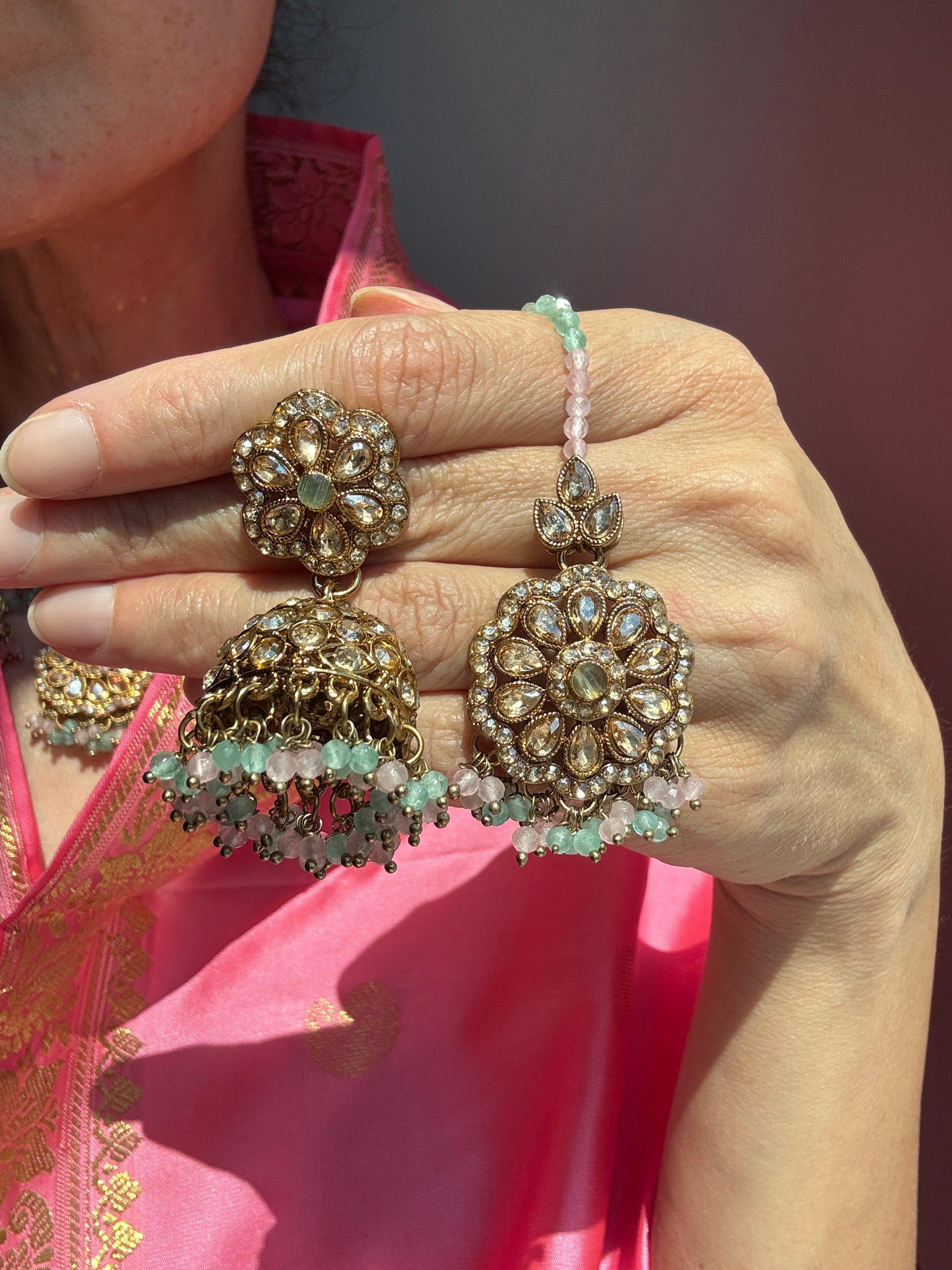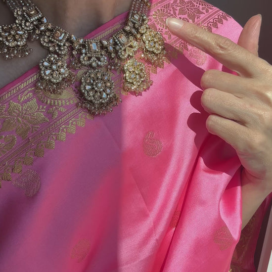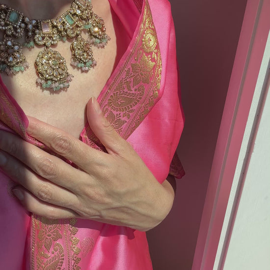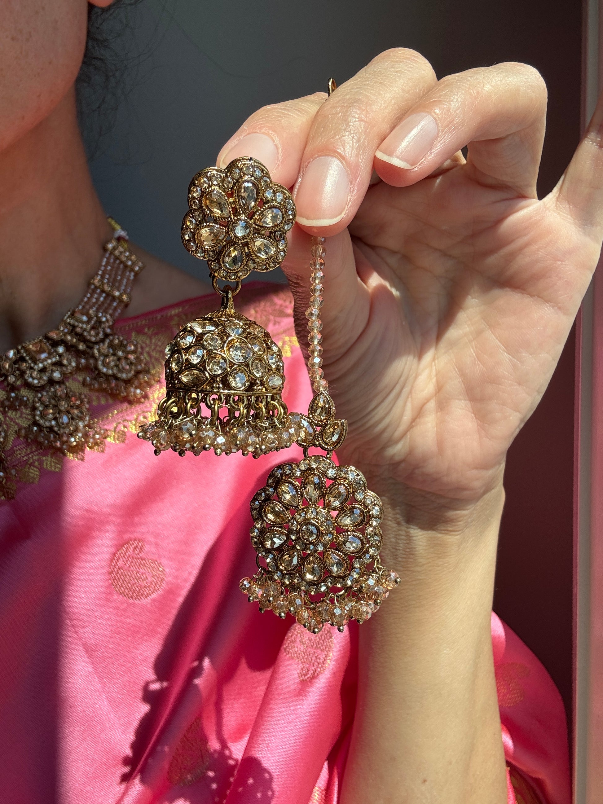 Stunning Champagne Polki Set with Necklace, Earrings and Tikka