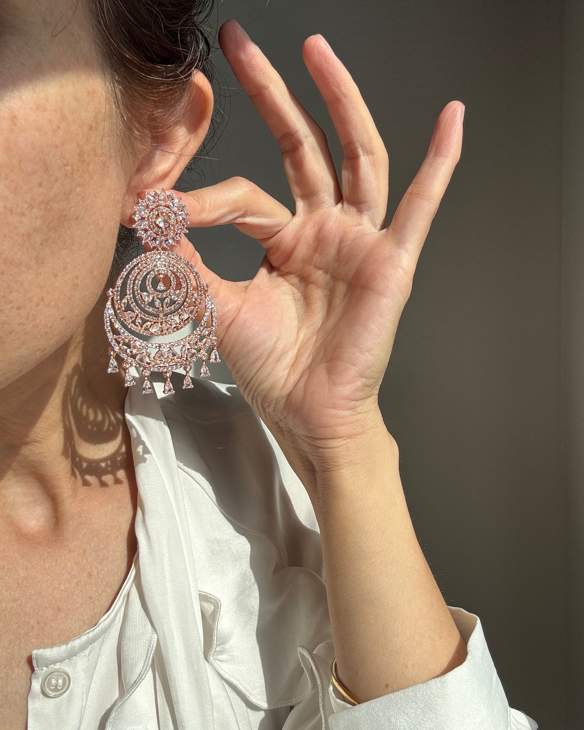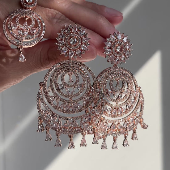 Elegant Rose Gold Chandbali Earrings & Tikka.