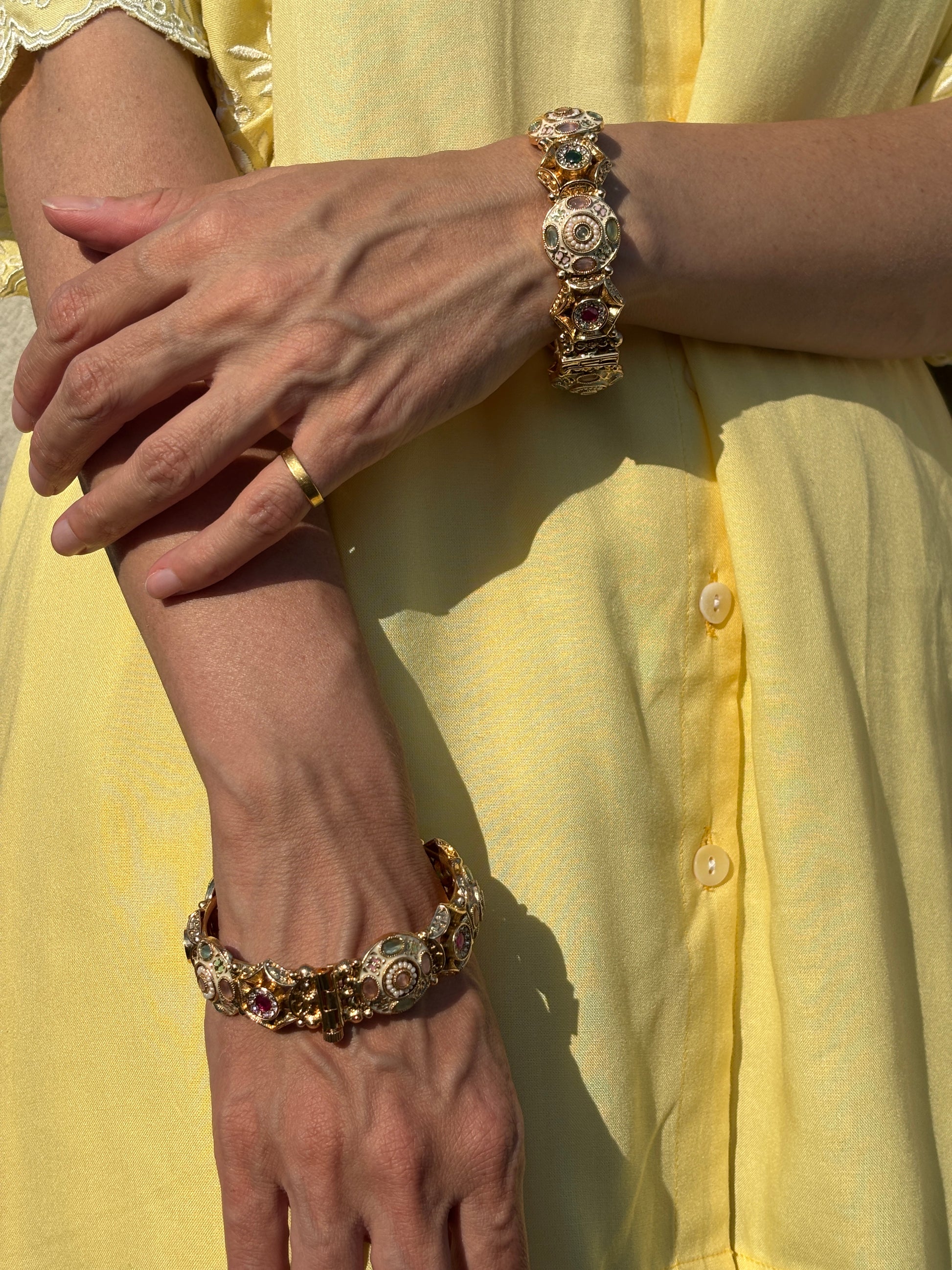 Real Gold look kate with meenakari, mint, pink & emerald colored stones along with polki & AD stones.