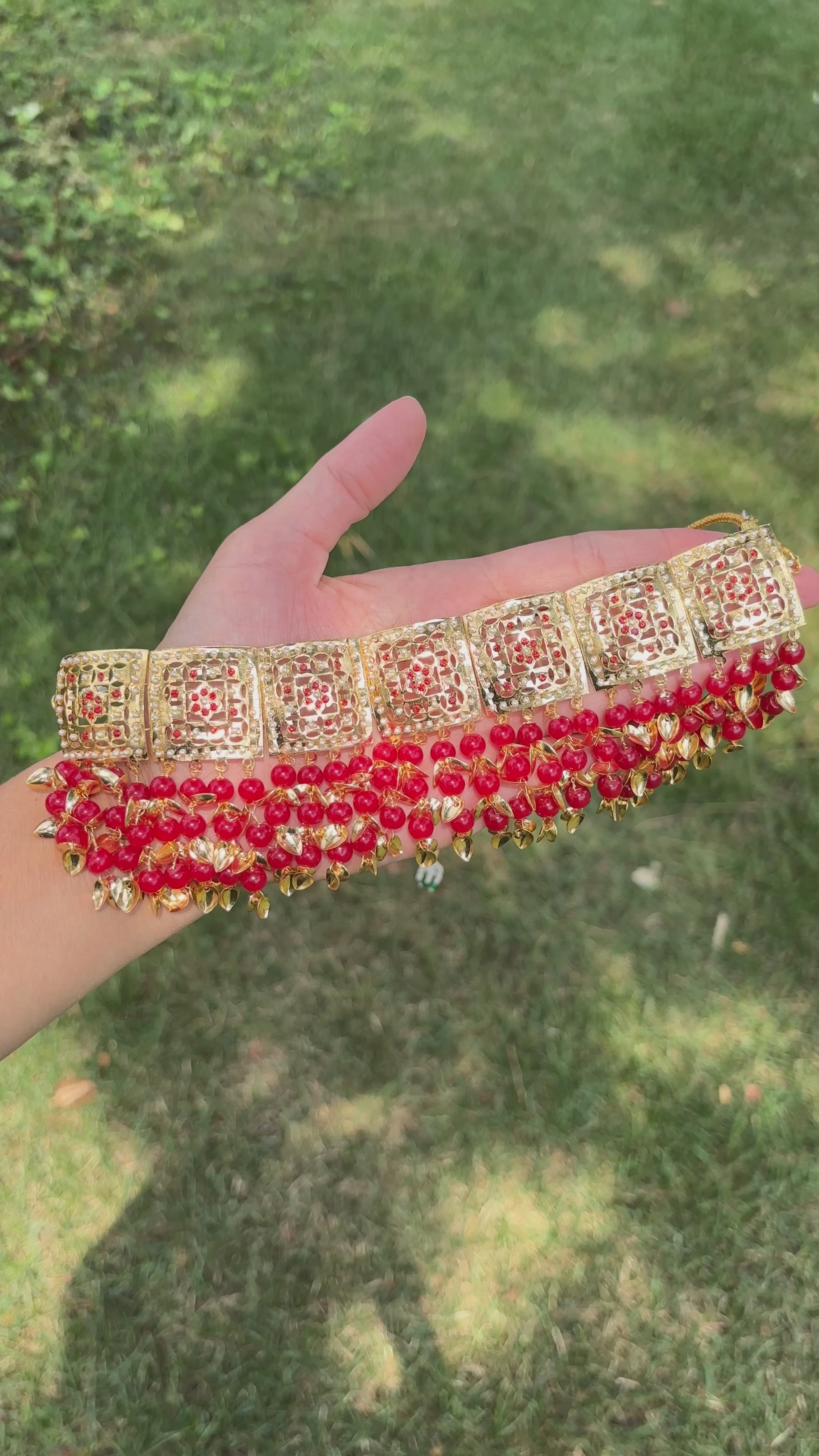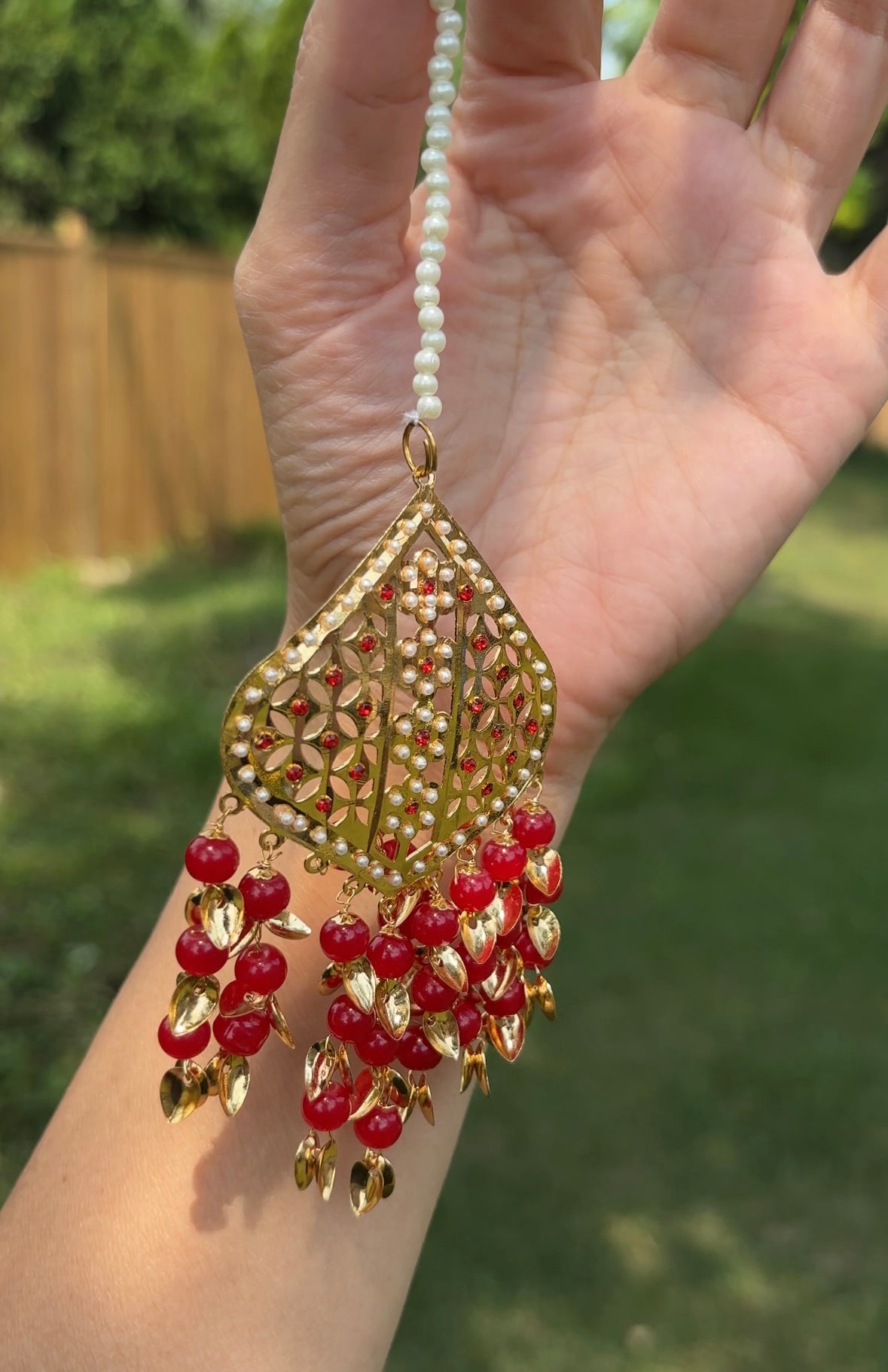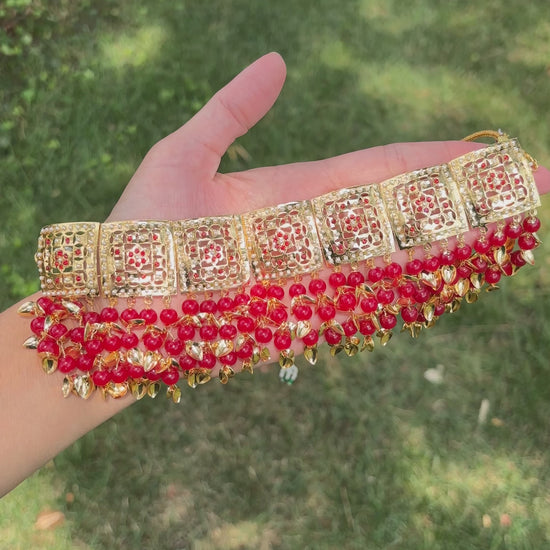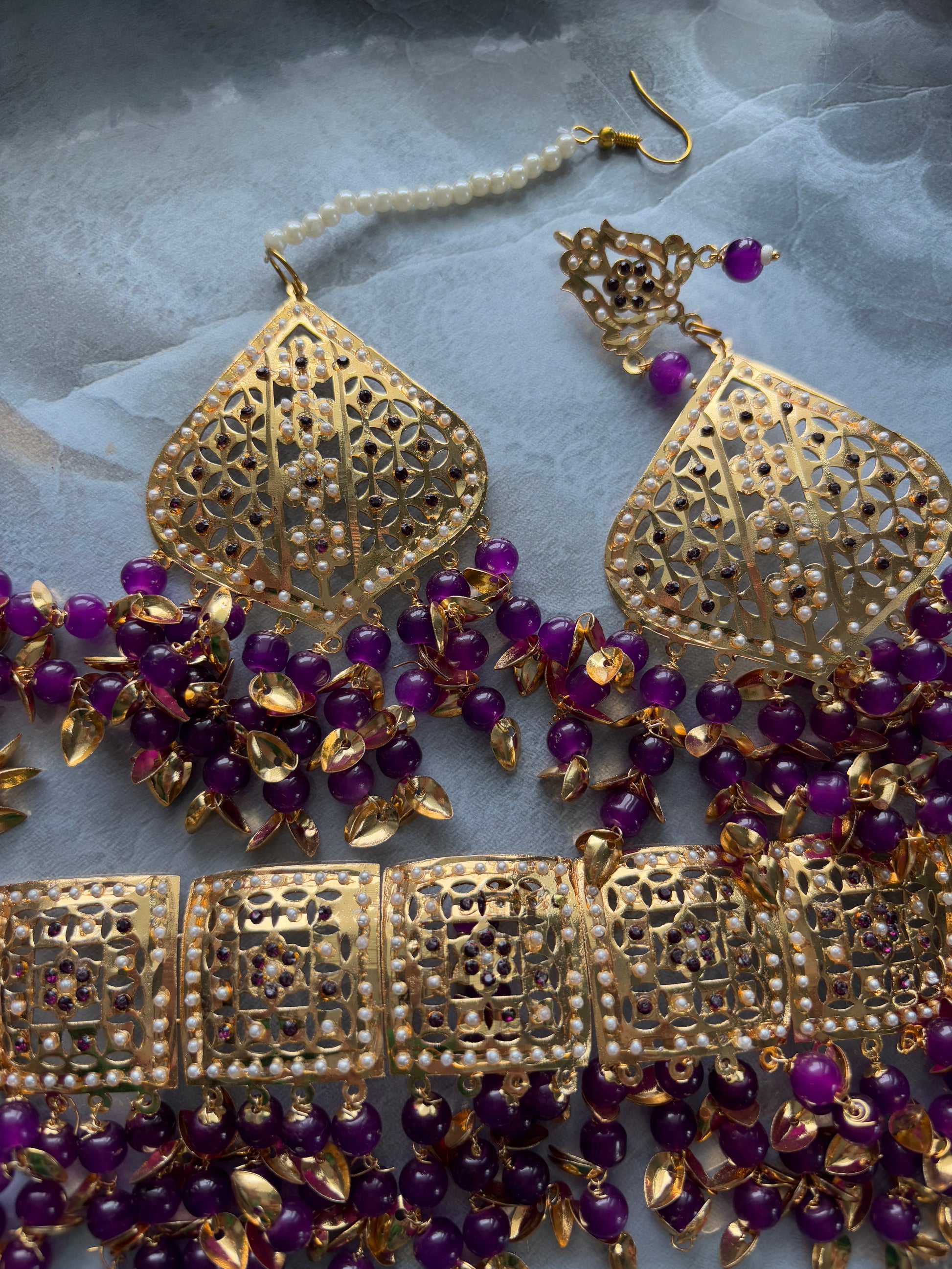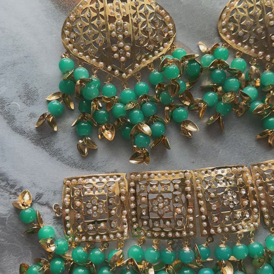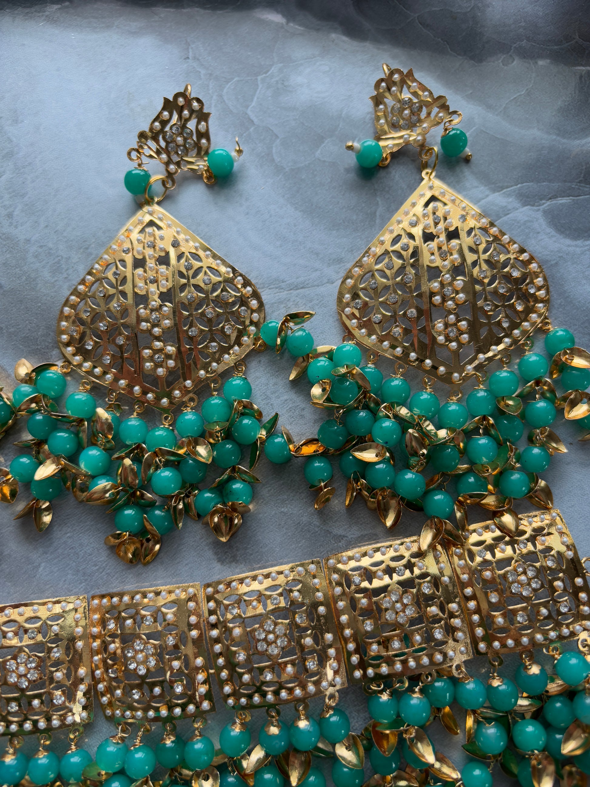 Jadau Gold Pipal Patti set with earrings and tikka.