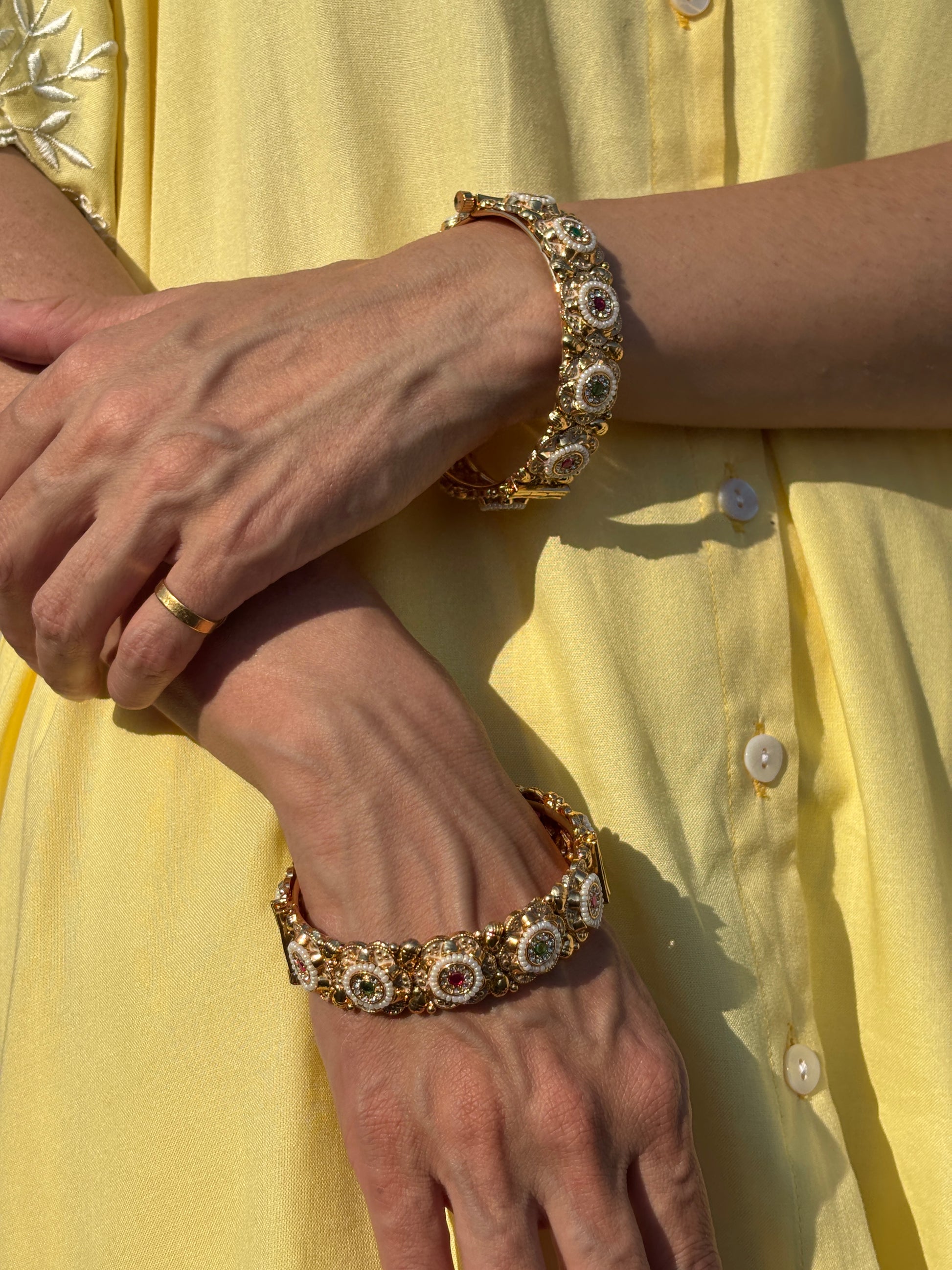 Real Gold look pearl kade with ruby & emerald colored stones.